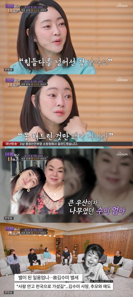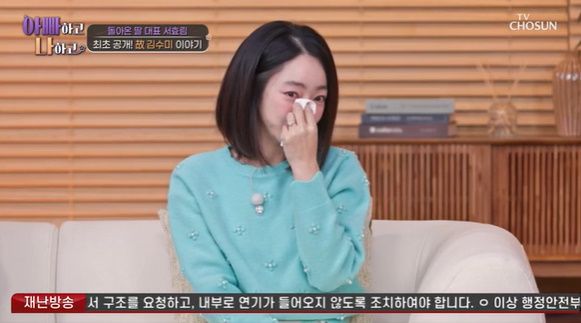 서효림은 " 힘들다라는 선이 넘어섰다. 힘들다라는걸 느끼지 못할 정도로 너무 갑작스러웠고 지작년에 돌아가시고 나서 지금도 믿기지 않는다. 매일을 후회하면서 살고 있다. 자책을 많이 하면서 살고 있다."라고 전했다.