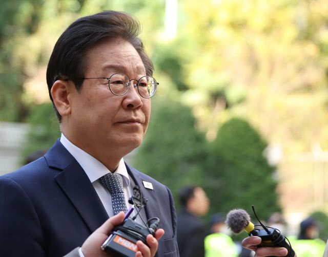 이 대표는 선거법 위반 사건 항소심 선고를 하루 앞둔 25일 대장동 재판에 출석했지만 항소심 선고 관련 질문에는 답을 하지 않았다. 이 대표는 이날 오전 서울중앙지법 형사합의33부(재판장 이진관) 심리로 열린 대장동·백현동·위례신도시 개발 특혜, 성남에프시(FC) 불법 후원금 관련 사건 공판에 출석했다. 그는 ‘공직선거법 2심 선고 결과를 어떻게 예상하느냐’, ‘윤석열 대통령 선고 결과가 밀리면서 선거법 2심 선고가 먼저 나오는데 이런 상황이 적절하다고 보느냐’는 취재진의 질문에 아무런 답을 하지 않고 법정으로 들어갔다.