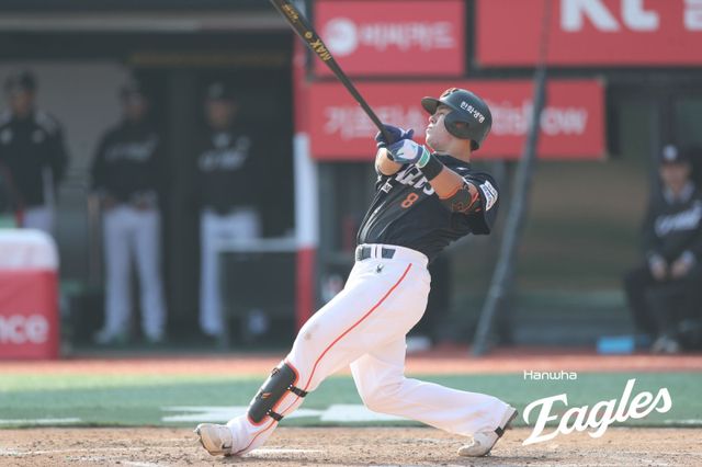 노시환은 지난 22일과 23일 열린 KT 위즈와 개막 2연전에서 이틀 연속 홈런포를 쏘아 올렸다. 22일 8회 원상현의 144㎞/h 직구를 밀어 우중월 솔로포를 때린 그는 23일엔 국가대표 마무리 투수 박영현이 던진 139㎞/h 커터를 왼쪽 담장 너머로 쏘아 올렸다. 1점 차로 뒤지고 있었던 9회 초 만든 극적인 동점포였다.