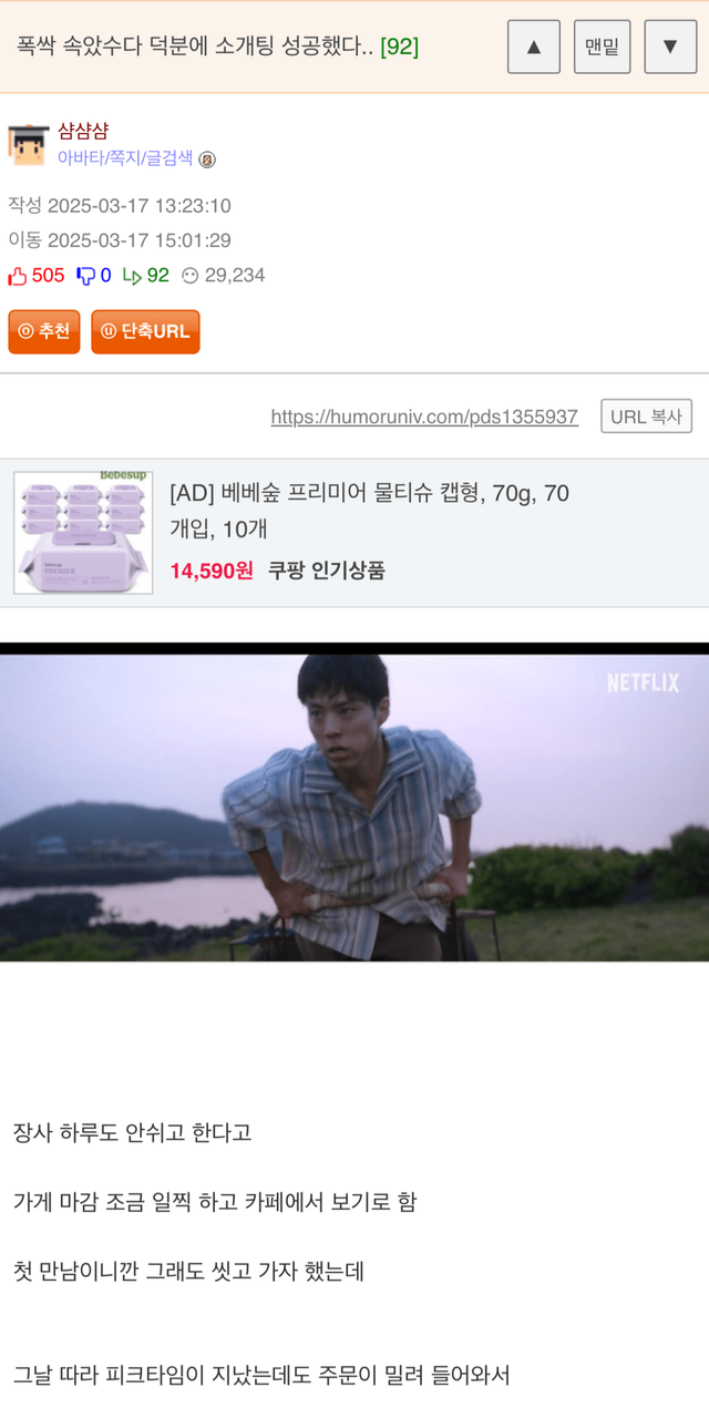 폭싹 속았수다 덕분에 소개팅 성공한 남자