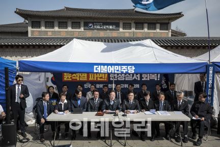 박찬대 민주당 원내대표는 이날 열린 민주당 현장 최고위원회의에서 “윤석열 정권은 검사 독재 정권이라는 말을 들을 정도로 집요하게 정적을 제거하려 애썼다”면서 “온갖 꼼수와 조작, 회유와 협박을 통해 이재명 죽이기에 앞장섰다”고 주장했다.