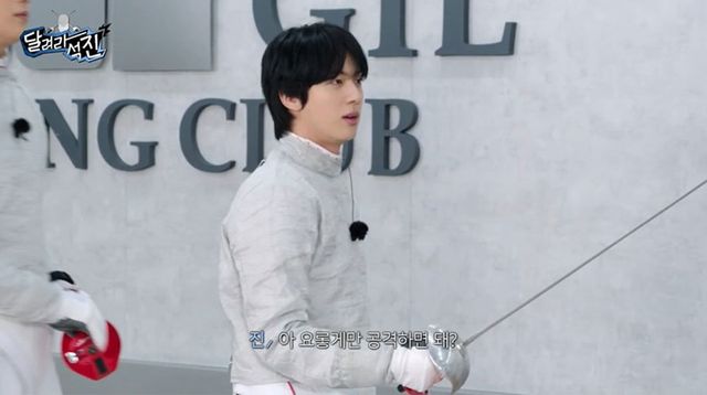 지난 25일 오후 9시 방탄소년단 유튜브 채널에 게재된 자체 예능 ‘달려라 석진’ 27화에서는 2024 파리 올림픽 펜싱 금메달리스트 구본길, 오상욱 선수와 함께하는 진의 펜싱 도전기가 펼쳐졌다.