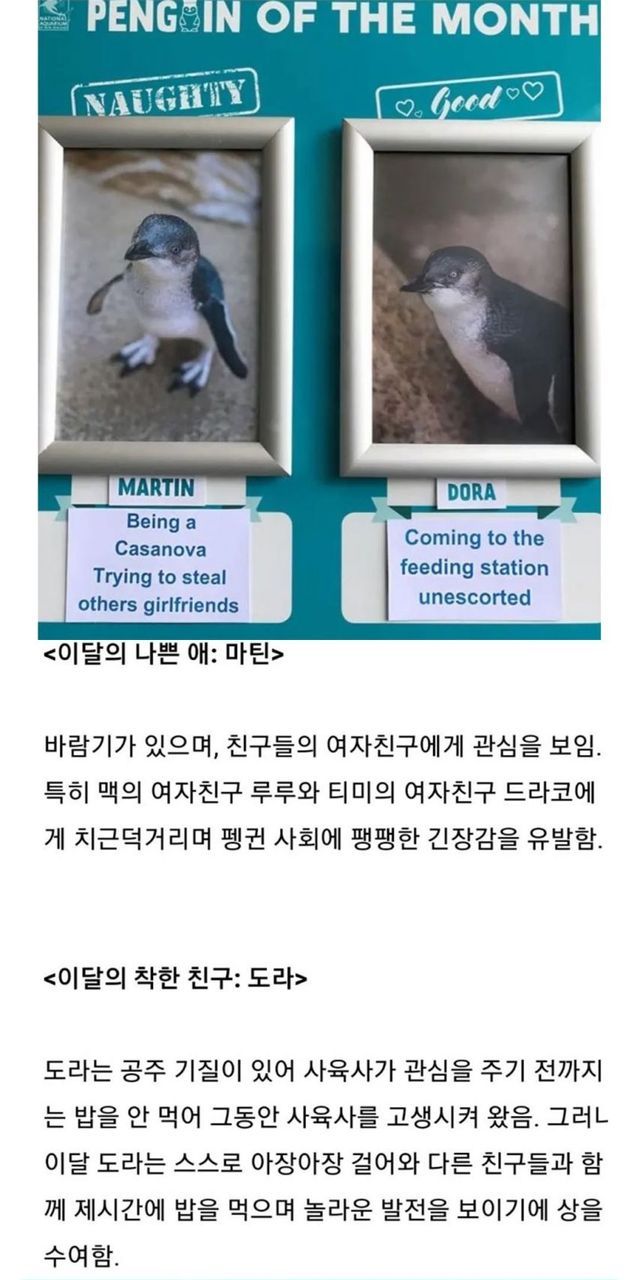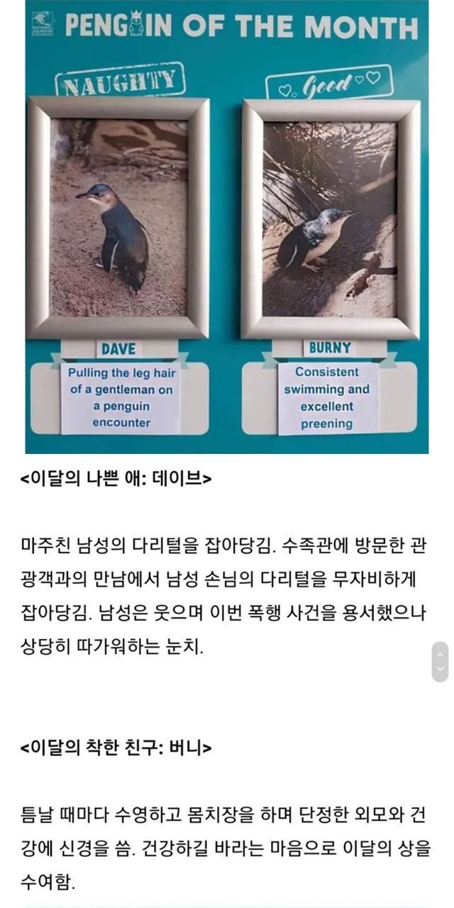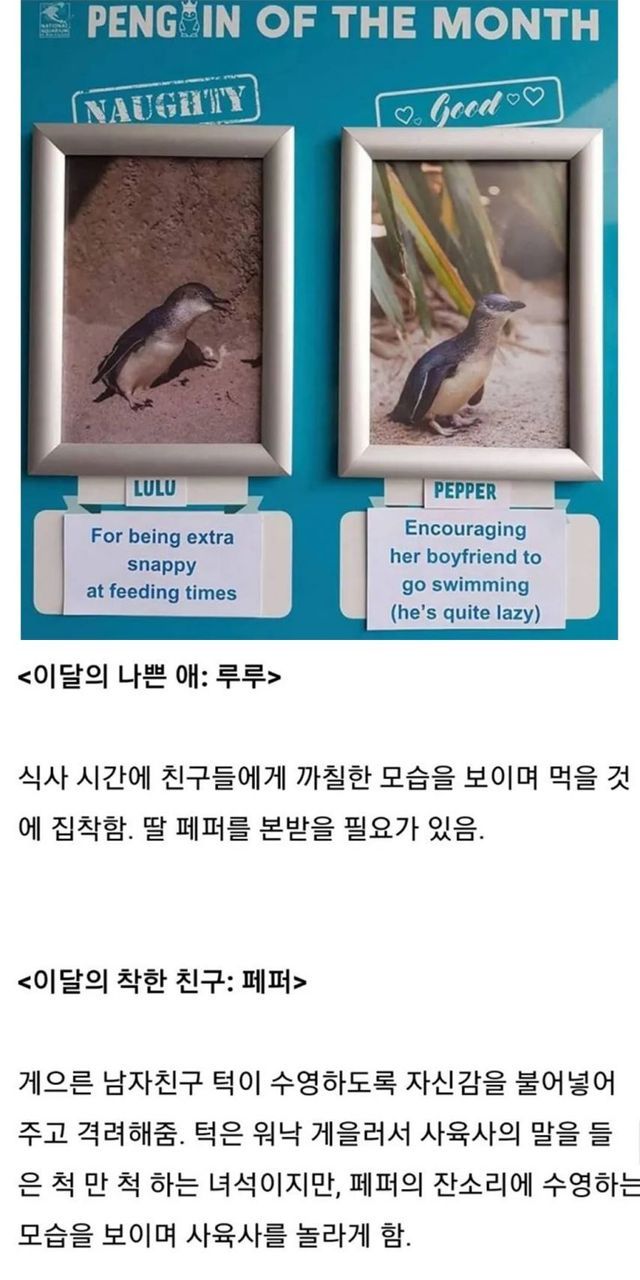 호주 어느 아쿠아리움에서 볼 수 있는 이달의 나쁜 펭귄과 착한 펭귄,,