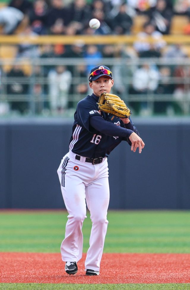 호수비가 빛났다. 1-1로 팽팽하던 4회 말 선두타자 안타와 포일로 2사 2루 실점 위기에 있던 상황이었다. 오윤석의 타구가 유격수와 3루수 사이 깊숙한 방면으로 흐르면서 안타로 이어지는 듯했다. 하지만 타구의 끝엔 유격수 박준영이 있었다. 끝까지 달려가 공을 잡아낸 박준영은 역동작임에도 안정적으로 1루에 송구하면서 아웃카운트를 만들어냈다.