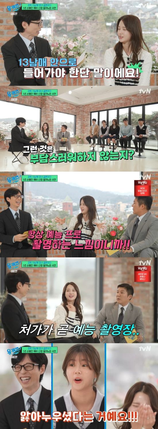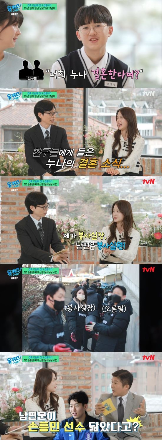 조세호는 "들리는 이야기에 따르면 남편분이 굉장히 훤칠한 외모에 손흥민 선수와 비슷하다는 이야기가 있다"라며 거들었고, 남보라 동생들은 "닮았다"라며 귀띔했다. 남보라는 "진짜 3초 손흥민"이라며 자랑했다.