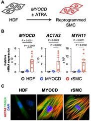 그 결과 ‘직접리프로그래밍된 평활근세포’(rSMCs)에서 평활근세포의 특이적 유전자와 단백질 발현이 급증했다.