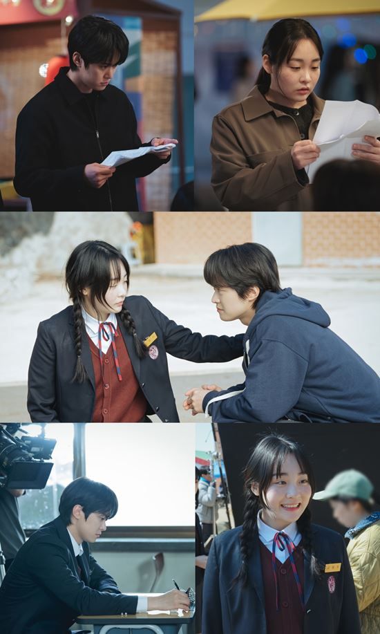 공명, 김민하는 앞서 공개된 메인 예고 영상에서부터 남다른 케미스트리로 눈길을 끌었다. 과거와 현재를 오가며 변화하는 인물의 감정을 디테일하게 표현해내는 건 물론, 첫사랑의 느낌을 고스란히 살려내며 설렘을 이끌었다. 이날 공개된 사진은 앞으로 펼쳐질 두 사람의 활약을 더욱더 기대케 한다. 쉬는 시간에도 대본을 손에서 놓지 않는 공명과 김민하. 인물의 작은 감정도 놓치지 않으려는 노력이 엿보인다. 촬영 현장의 친근한 분위기는 이미 두 사람이 ‘람우’와 ‘희완’ 그 자체가 되었음을 느끼게 한다.