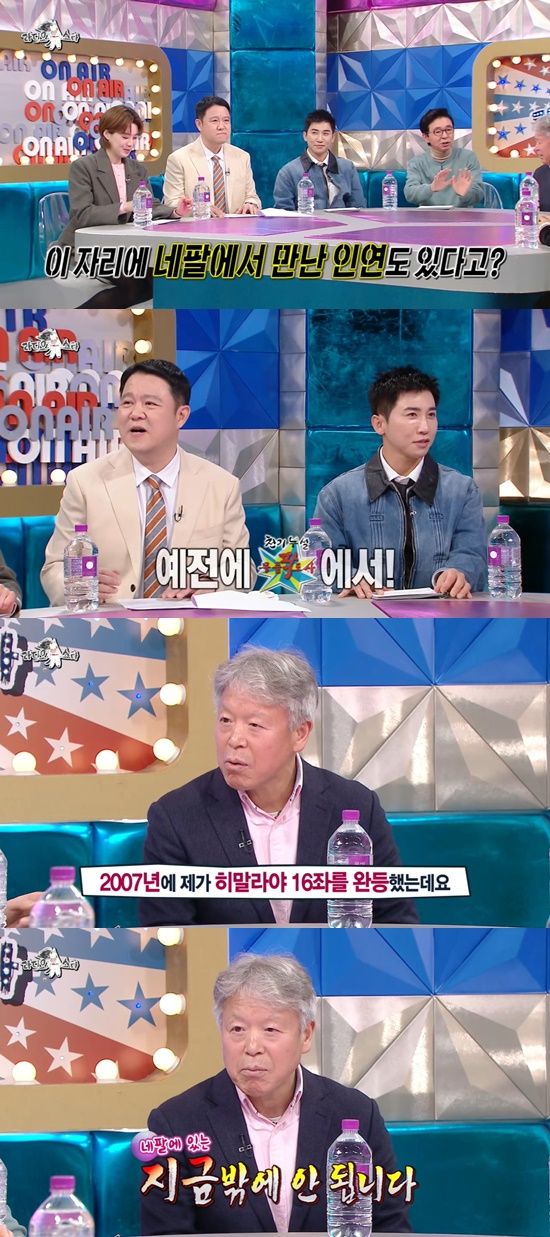 엄홍길은 "2007년도에 제가 히말라야 16좌 완등을 했다. 한국 방송국에서 작가님을 통해 섭외 요청이 왔다더라. 안 하겠다고 했는데, 계속 연락이 오고 대사관을 통해서까지 연락이 왔더라"고 말했다.