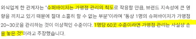 결국은 가맹점은 많고 슈퍼바이저는 지나치게 적어 관리감독이 잘 안됨