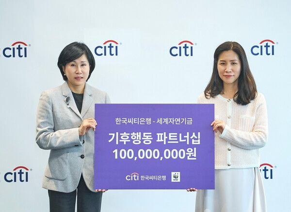 [폴리뉴스 김지혜 기자] 한국씨티은행은 26일 서울 종로구 새문안로에 위치한 본점에서 WWF와 ‘기후행동 파트너십 프로그램 – 내일을 위한 변화’ 후원 협약을 맺고, 후원금 1억 원을 전달했다고 27일 밝혔다.