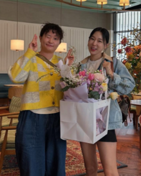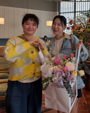 공개된 사진 속 이지혜는 원지와 함께 다정하게 포즈를 취하고 있으며, 상체만큼 거대한 꽃다발을 들고 있어 눈길을 끈다. 이는 최근 원지의 결혼을 축하하는 것으로 보인다.