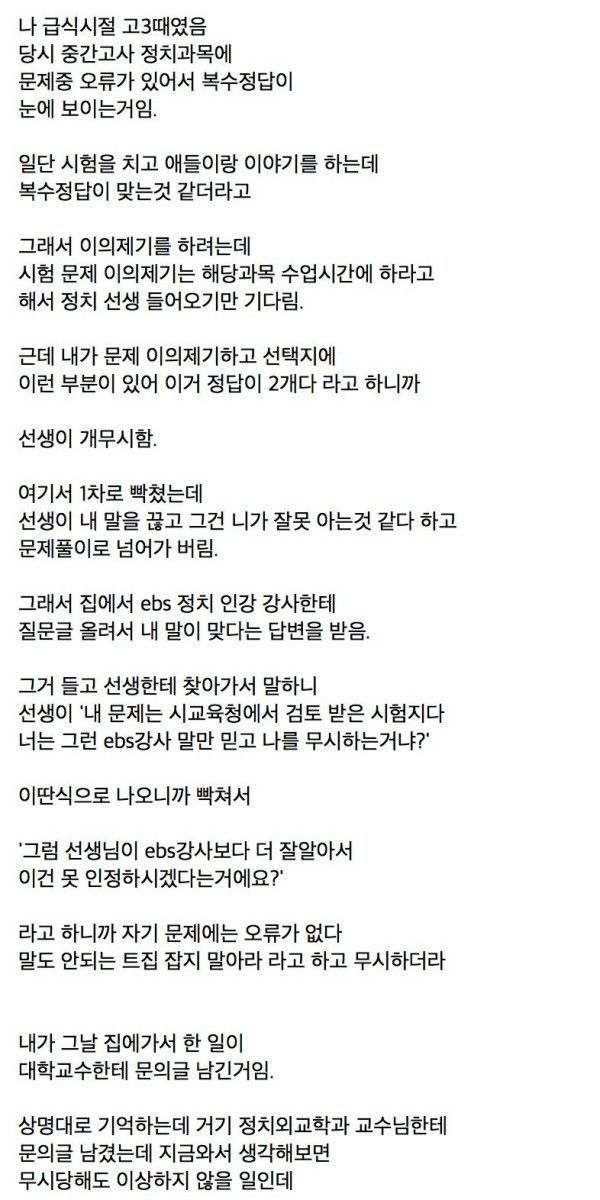 시험문제 오류 인정 안하는 교사 참교육한 급식이,,