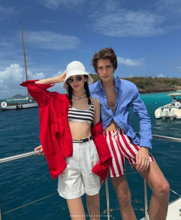 아이린은 스트라이프 패턴의 비키니에 흰색 반바지를 매치하고, 빨간색 셔츠를 걸쳐 감각적인 스타일을 선보였다. 또한, 외국인 남자 모델과 다정한 분위기를 연출하는 커플 콘셉트 사진을 공개해 눈길을 끌었다.