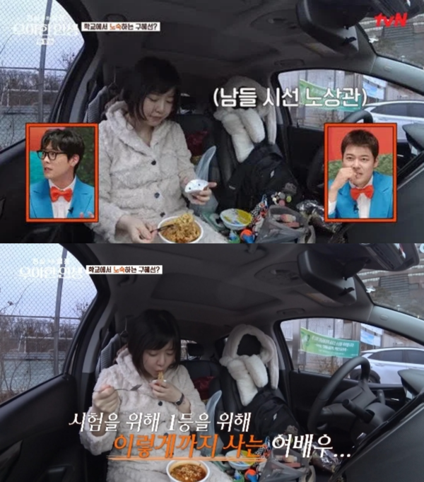 그는 방송에서 “7년 동안 배우를 쉬고 있는 구혜선이다”라고 자신을 소개하며, “시험이거나 중요한 날에는 차에서 자거나 도서관에서 잔다”고 털어놓았다.
