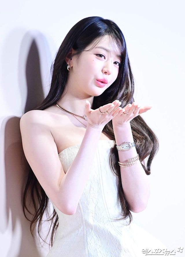 이날 행사에 참석한 아이브 장원영이 포토타임을 갖고 있다.
