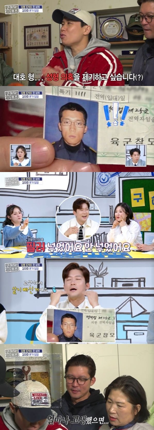 그때 양세형은 뭔가를 발견하더니 웃었다. 양세형은 "이거 보여줘도 되나? 성형 의혹을 제기하고 싶다"라며 김대호의 전역증 사진을 공개했다.