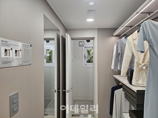 2층에는 65㎡A, 84㎡B 유닛이 조성돼 있었으며 상대적으로 작은 평수인 65㎡A에 더 많은 대기가 있었다. 서울 및 수도권 주요 지역과 비교해 해당 평형의 분양가가 5억원대 상당인 만큼 가격 경쟁력이 있다는 게 업계 평가다. 롯데건설 관계자는 “65㎡ 평형의 가장 큰 특징은 펜트리와 드레스룸 공간이 있다는 것”이라며 “20평 초반 평수에 이 두 가지가 다 있는 것은 드물다”고 설명했다.