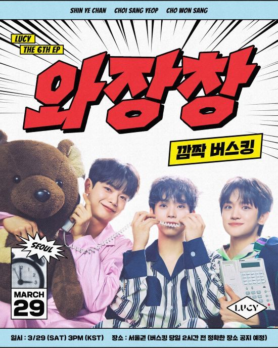 루시는 오는 29일 오후 3시 서울 모처에서 미니 6집 '와장창' 깜짝 버스킹을 진행한다. 버스킹 당일인 29일 오후 1시, 루시의 공식 SNS를 통해 정확한 장소가 공지될 예정이다.