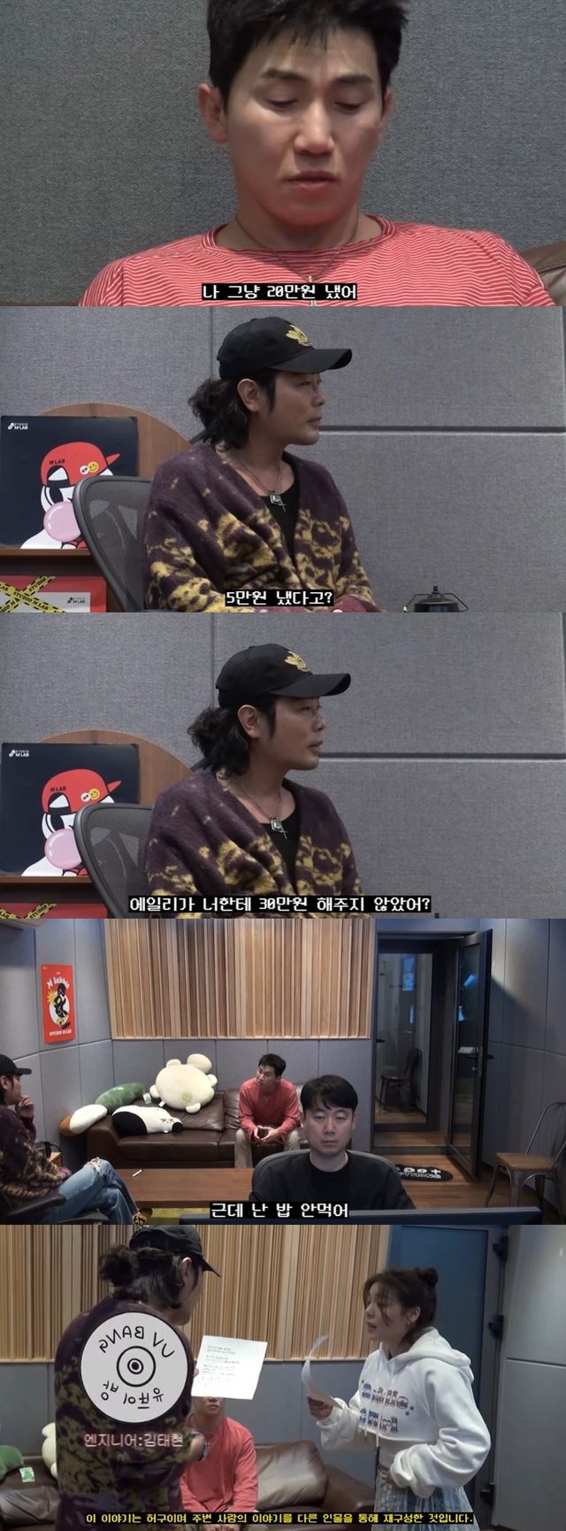 이에 윤세윤은 "작년에 너희 아버지 팔순 잔치 때 에일리가 너한테 30만 원 해주지 않았냐. 나한테 줘서 내가 기억한다"고 했고, 뮤지는 잠시 당황한 내색을 보이곤 "근데 나는 밥 안 먹는다"라고 덧붙였다.