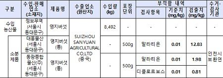 회수 대상은 ‘정보무역(서울시 동대문구)’에서 수입한 중국산 영지버섯(생산년도: 2020년)과 이를 ‘대흥물산(서울시 동대문구)’과 ‘동광종합물산(주)(서울시 동대문구)’ 에서 소분·판매한 제품이다.