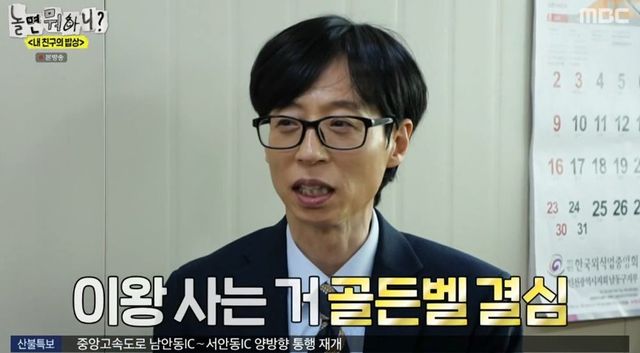이어 계산을 앞두고 하하는 유재석을 눈치를 보다가 “부장님, 잘 먹었다”라고 냉큼 말하는 것으로 유재석을 당황케 했다. 이에 막내 임우일이 “내가 내겠다”며 나서자 유재석은 “가만히 있으라. 이왕 사는 거 골든벨을 울리자”며 만류했다.