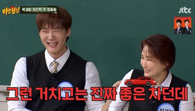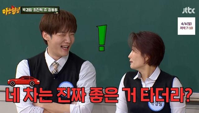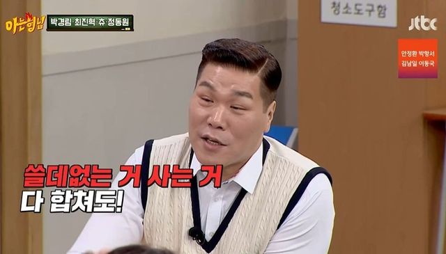 최진혁은 “(박경림이) 차를 안 좋아한다”고 다급히 해명했지만, 박경림은 “그런 거 치곤 진짜 좋은 차 타던데”라고 밝혔다. 서장훈도 “네가 쓸데없는 거 사는 거 다 합이면 차 금방 한 대 뽑아줄 것 같은데”라고 폭로했다.