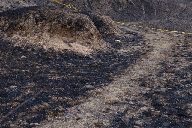 경북경찰청은 29일 경북산불의 최초 발화 추정 지점인 의성군 괴산리 야산의 한 묘지에서 2시간가량 현장조사를 실시했다. 이번 조사에는 경북경찰청 형사기동대와 과학수사계 인력이 참여했다. 경찰은 산불로 훼손된 묘지 주변을 촬영하고 버려진 라이터를 수거했다.