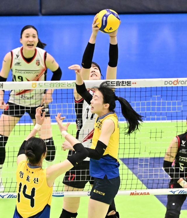 1세트 1-2로 지고 있던 정관장은 메가의 오픈, 정지윤와 모마의 범실로 3점을 뽑았다. 4-6으로 끌려가던 현대건설은 모마의 백어택, 고예림의 연속 오픈으로 리드를 되찾았다.