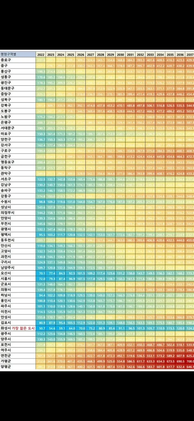 파란색일수록 젊은도시