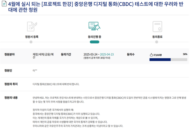 우리나라에서도 프로젝트 한강 발표 직후인 지난 24일, 국회 국민동의 청원에 실험 중단을 요구하는 글이 올라왔습니다. “CBDC의 도입은 국가의 통제력이 강화되고, 개인의 재정적 자율성이 축소될 위험이 있다”라며 “신중한 접근을 요구한다”라는 것입니다. 편리성을 값어치로 새로운 지급수단으로 떠오른 CBDC, 실제 통용되기까지 치러야 할 비용은 많아 보입니다.