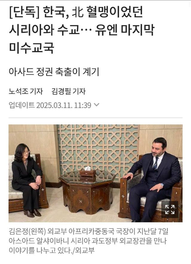 시리아 반군이 승리하면서 들어선 과도정부의 기회를 얻어 수교했다고
