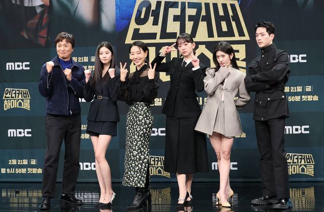 배우 전배수(왼쪽부터)와 김민주, 김신록, 진기주, 박세현, 서강준이 지난달 20일 오후 서울 마포구 상암 MBC에서 열린 MBC 금토드라마 '언더커버 하이스쿨' 제작발표회에 참석해 포즈를 취하고 있다. '언더커버 하이스쿨'은 배우 서강준의 전역 후 복귀작으로 화제를 모은 작품으로 고종 황제의 사라진 금괴의 행방을 쫓기 위해 고등학생으로 위장 잠입한 국정원 요원의 좌충우돌 N차 고딩 활약기를 담은 작품이다 / 뉴스1
