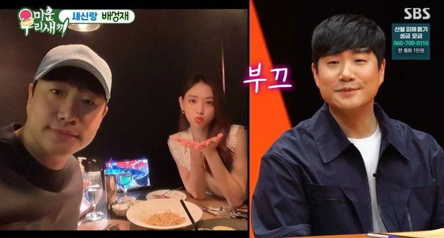 스킨십 사진에 이르러 서장훈이 “뒤에서 김 아나운서가 안고 있다. 서로 사랑하는 게 맞다”고 하자 배성재는 “내가 무슨 협박해서 결혼하는 것도 아니고 무슨 말씀을 하시나”라고 발끈, 큰 웃음을 자아냈다.