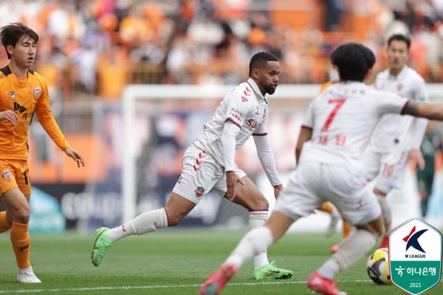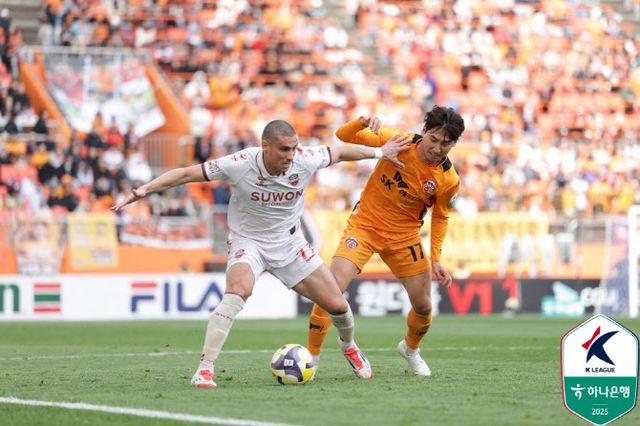제주가 다시 기회를 잡았다. 전반 27분 김륜성이 올려준 공을 이지솔이 헤더로 걷어낸 게 최규백 몸에 맞고 골대를 때렸다. 수원FC도 반격에 나섰다. 전반 43분 페널티박스 오른쪽에서 안데르손이 상대 수비수를 제친 뒤 왼발 슈팅을 시도했으나 수비진에 막혔다.