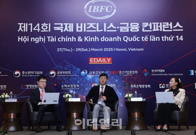 이데일리가 지난 27~29일 사흘간 베트남 하노이 인터콘티넨탈 랜드마크72 호텔에서 ‘제14회 국제 비즈니스·금융 컨퍼런스(IBFC)’를 개최했다. 둘째 날인 28일(현지시간) 진행한 세션1에서 손병두 대표(한국거래소 전 이사장)와 안철경 보험연구원장, 고영경 연세대 국제학대학원 교수 등 전문가들은 ‘지속가능한 미래를 위한 한국과 베트남의 금융시너지’를 주제로 활발한 토론을 벌이며 한국과 베트남 양국 간의 금융 분야 협력 방안에 대한 의견을 밝혔다.