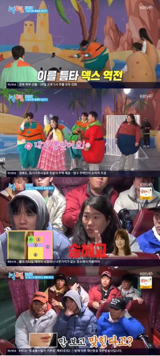 30일 방송된 KBS 2TV '1박 2일 시즌4'에서는 김종민, 문세윤, 조세호, 이준, 딘딘, 유선호의 KBS 표류기가 전파를 탔다.