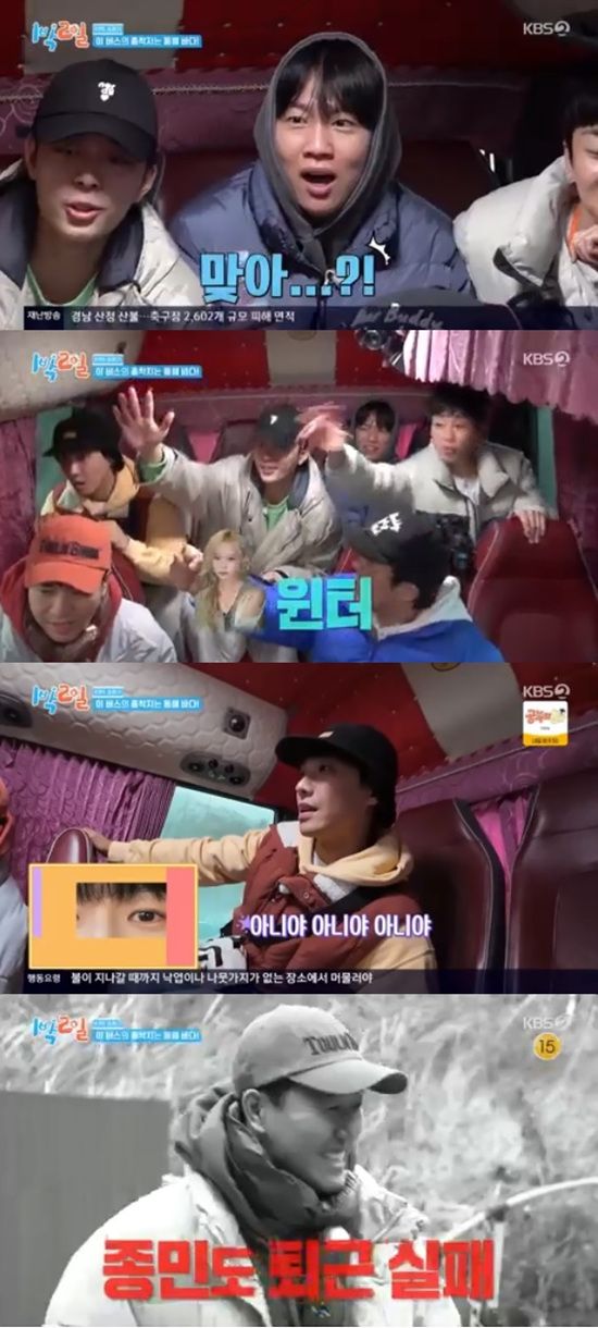 멤버들은 다음날 아침 기상하자마자 버스에 탑승했다. 주종현PD는 버스 종착지가 동해바다라고 얘기했다.