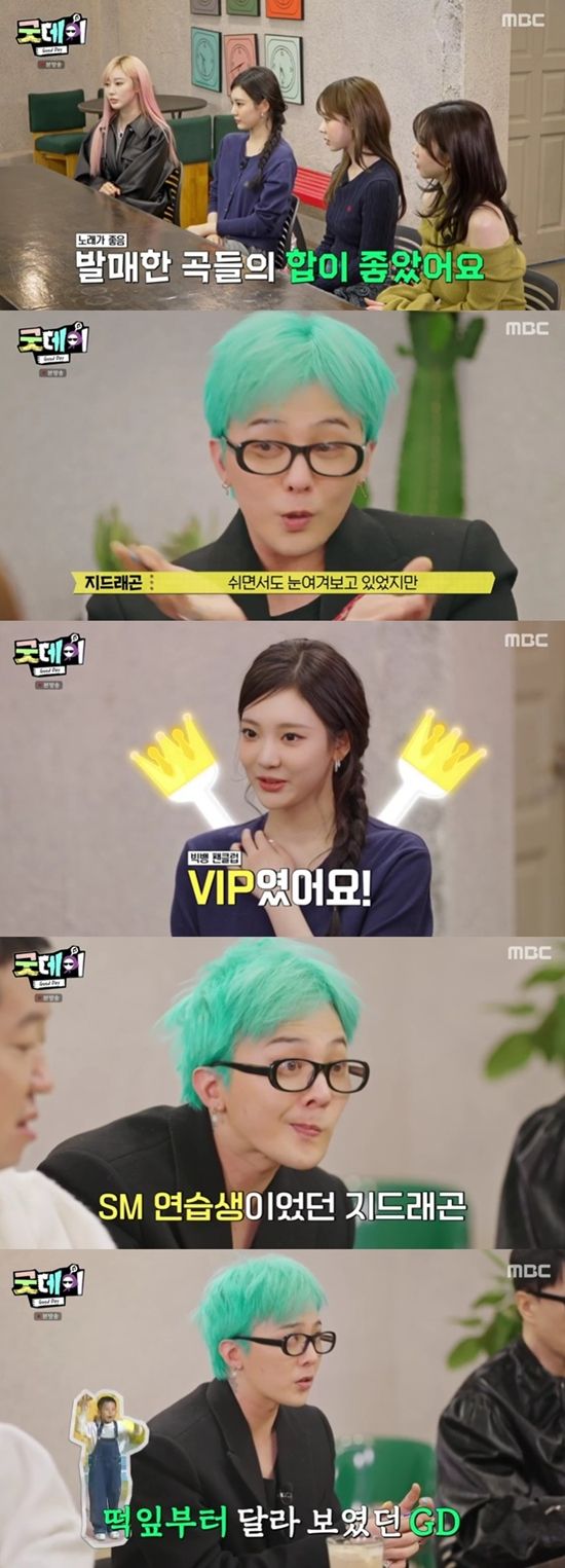 30일 방송된 MBC 예능 프로그램 '굿데이'에는 에스파와 지드래곤의 만남이 그려졌다.