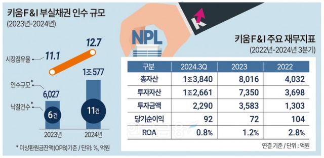 이는 지난해 하반기 적극적으로 부실채권을 매입한 결과다. 금융지주계 NPL투자사가 하반기 RWA 관리 기조로 NPL 입찰에 소극적으로 참여한 사이, 키움에프앤아이는 적극적으로 인수했기 때문이다.