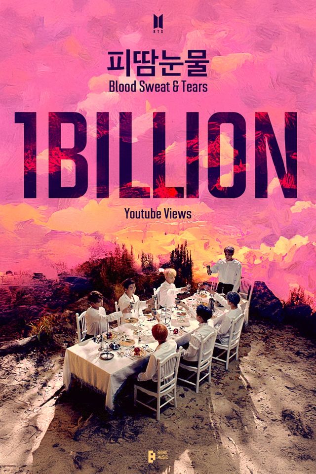 방탄소년단의 '피 땀 눈물' 뮤직비디오가 10억 뷰를 달성했다.