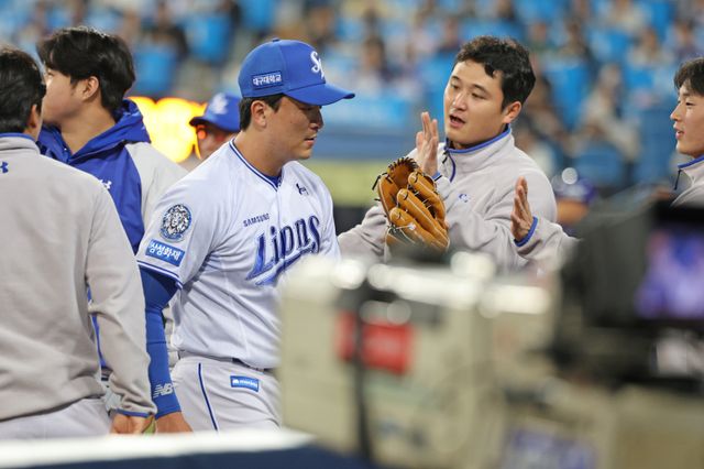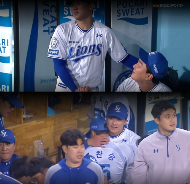 자신이 자초한 만루 위기를 무실점으로 막아냈다. 미안하고 감사한 마음에 더그아웃에 들어온 선배에게 조용히 다가갔고, 선배는 말없이 후배를 끌어 안으며 그를 토닥였다. 이후 후배는 다시 한번 선배를 찾아 감사의 뜻을 전했고, 숨을 고르던 선배는 환하게 웃으며 후배의 손을 꼭 잡았다. 당시를 돌아본 '선배' 이재희(24·삼성 라이온즈)는 "정신 차리라며 머리 쓰다듬어줬다"라며 웃었다고.