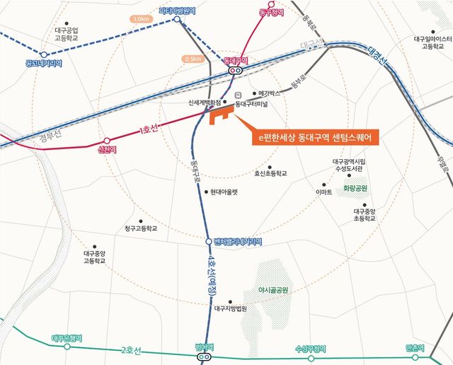 e편한세상 동대구역 센텀스퀘어는 대구 내 핵심 주거지로 급부상한 동대구에서도 중심 입지인 옛 동대구 고속터미널 부지에 들어선다. 실제 단지가 위치한 동대구역 사거리는 동대구역을 품은 동부로와 범어역으로 이어지는 동대구로가 교차하는 대구에서도 핵심으로 손꼽히는 입지다. 엑스코선(예정) 등 굵직한 교통호재도 계획 중이어서 미래가치도 높다는 평가다.