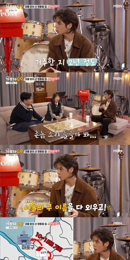이에 정동원은 "저는 서울에 처음 올라온 중1 때부터 서울에 대해 모르는 것처럼 보이면 부끄럽다고 생각했다. 촌놈 소리 들을까 봐 일부러 서울에 있는 구 이름을 다 외웠다. 그때부터 서울 부동산 공부를 해와서 거의 외우고 있는 상태"라고 전해 놀라움을 안겼다.
