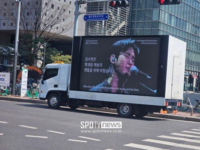 김수현의 브라질 팬들은 31일 그의 기자회견 장소 근처에 트럭을 보내 "김수현은 평생을 팬들을 위해 바쳤다"라고 김수현을 향한 사이버 불링을 멈춰달라고 호소했다.