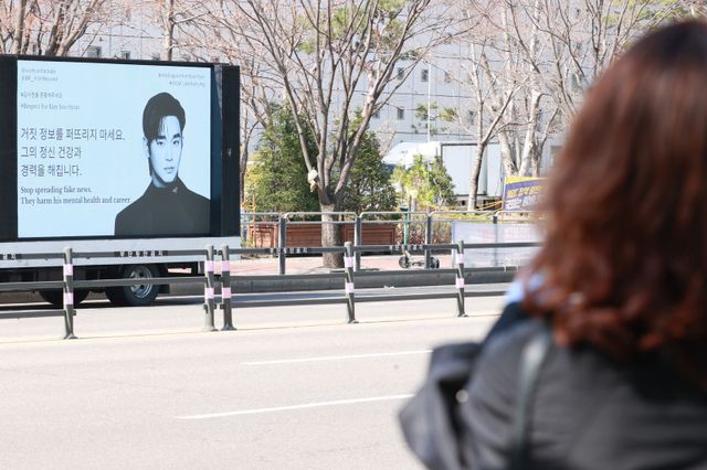 브라질 팬이 보낸 것으로 알려진 트럭 전광판에는 “김수현은 평생을 예술과 팬들을 위해 바쳤다”, “우리는 증오가 승리하는 것을 두고 볼 수 없다”라는 문구가 담겼다. 또 “언제나 지지하기로 했다”, “거짓 정보를 퍼뜨리지 말라. 그의 정신 건강과 경력을 해친다” 등의 문구도 함께 노출됐다.