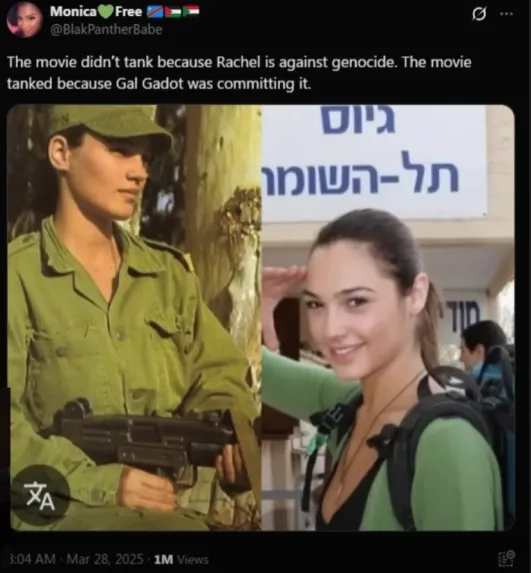 레이첼 지글러는 개봉전에 팔레스타인 지지를 선언하면서 대놓고 갤가돗이랑 기싸움하면서 대립각 세움