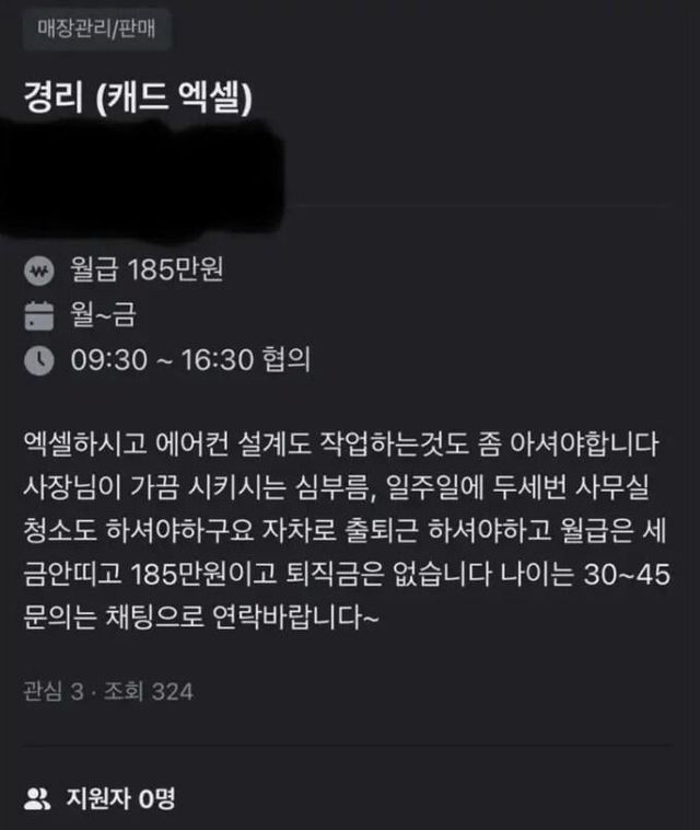 경리가 해야할건 많은데 월급은 쥐 똥만큼