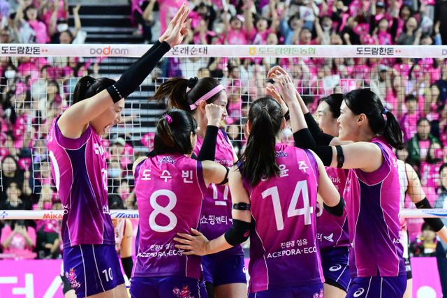 세트 후반 21-15까지 점수차를 벌린 흥국생명은 이후 정관장의 매서운 추격을 뿌리치고 승리의 환호성을 질렀다. 이날 경기장을 가득 메운 5811명 관중들도 기쁨을 함께 했다.