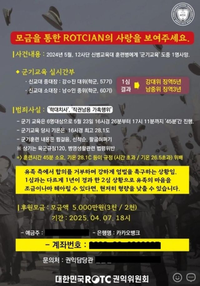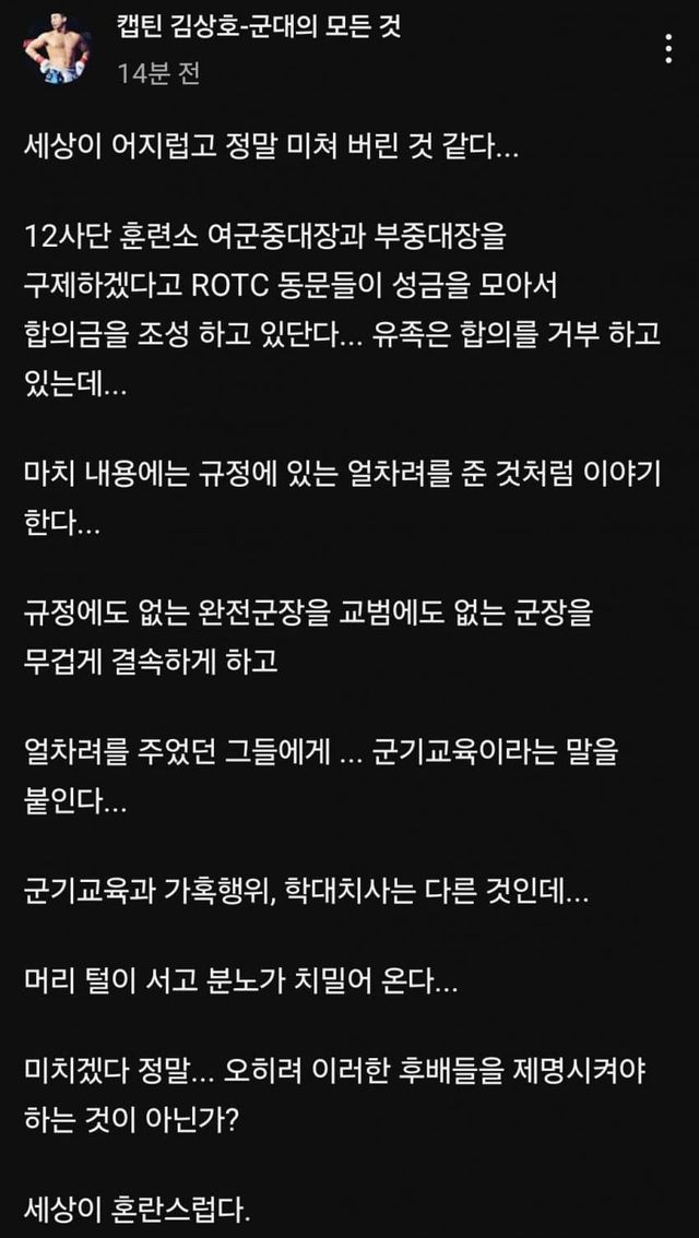 여군 중대장을 위해 rotc 동문회에서 모금중