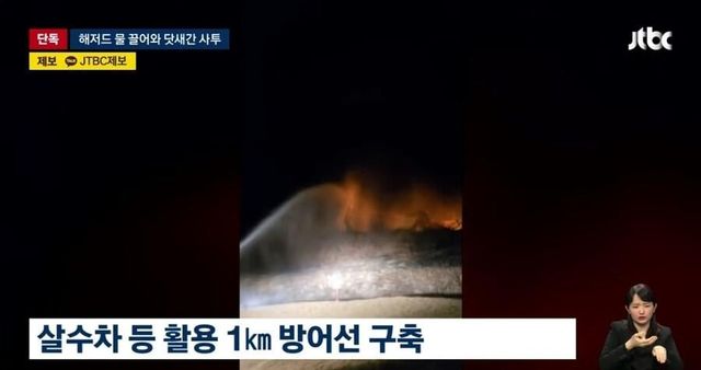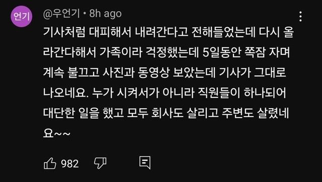 다들 대피했다가 불길을 뚫고 수십명이 다시 돌아와서 방어선을 구축함